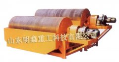 該類設(shè)備利用永磁磁系所產(chǎn)生的磁力,將礦漿中的磁性礦物吸引到圓筒表面上來,并隨著圓筒一起旋轉(zhuǎn),待脫離磁場作用后在重力、(刮板)作用下,排出機(jī)外,而非磁性物料從尾礦口排除,完成分選作用。